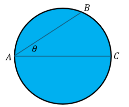 Uma mulher em um ponto A na praia de um lago circular com raio de $3 km$ quer chegar no ponto C diametralmente oposto a A do outro lado do lago no menor tempo possível. Ela pode andar a uma taxa de $6 km/h$ e remar um bote a $3 km/h$. Como ela deve proceder?